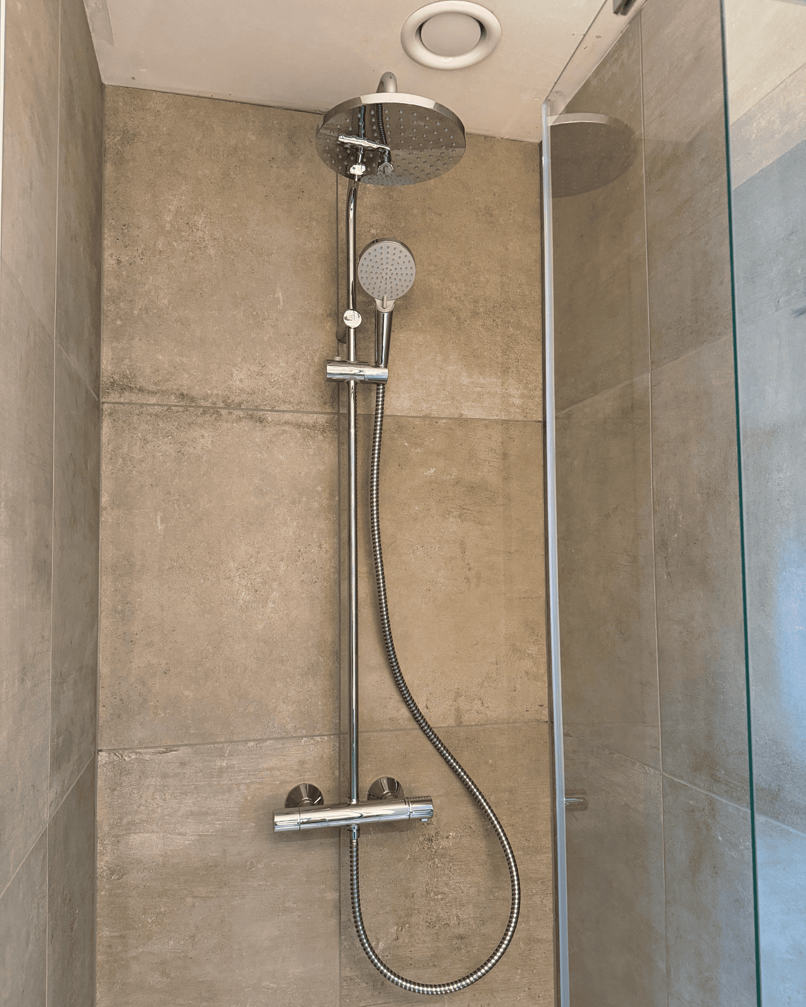 “Oorspronkelijk was dat niet voorzien. We hebben het erna dan aangegeven en dan zijn we tot een goede oplossing gekomen. Tussen de 2 slaapkamers hebben ze een douchecel toegevoegd.” – Anneleen
