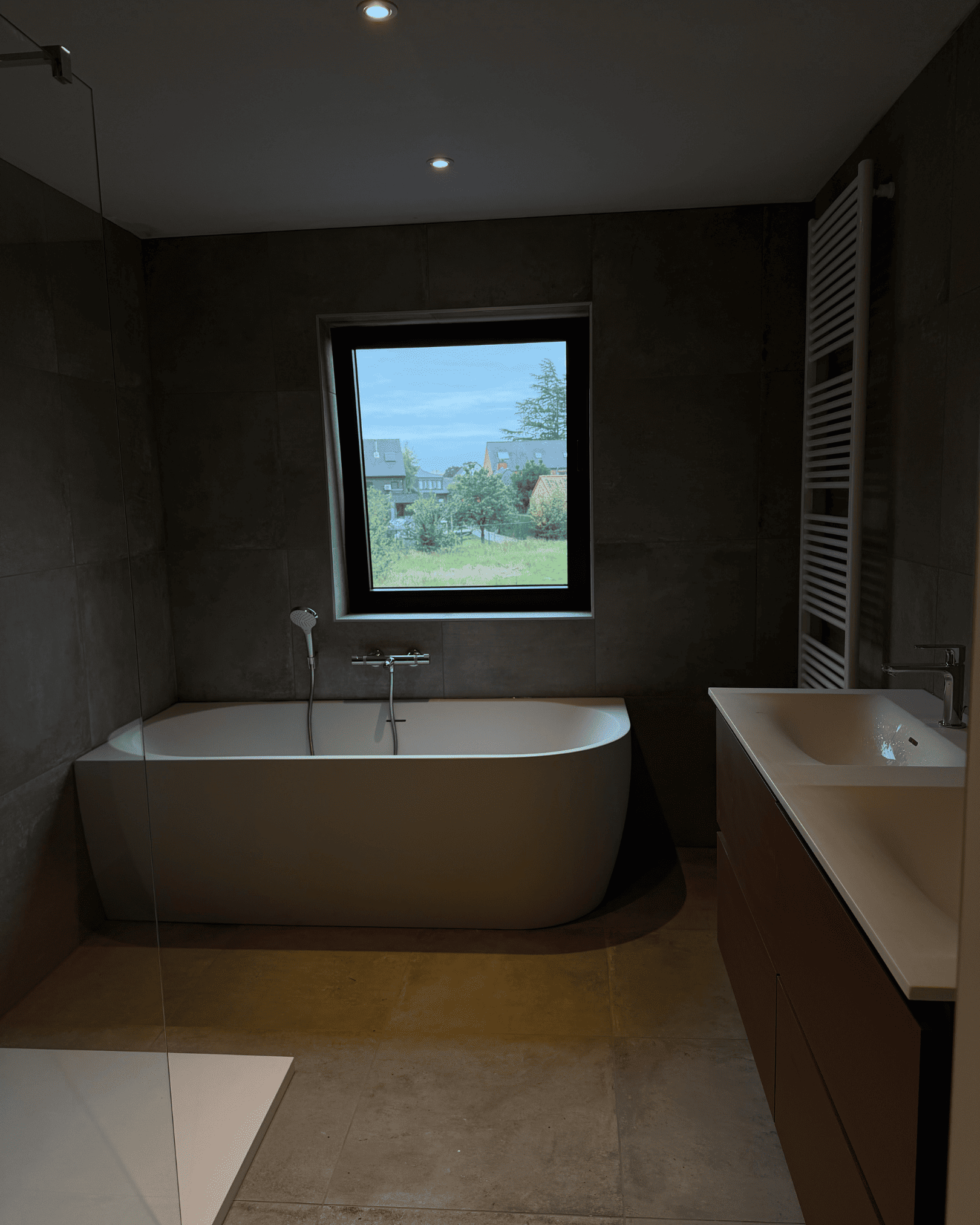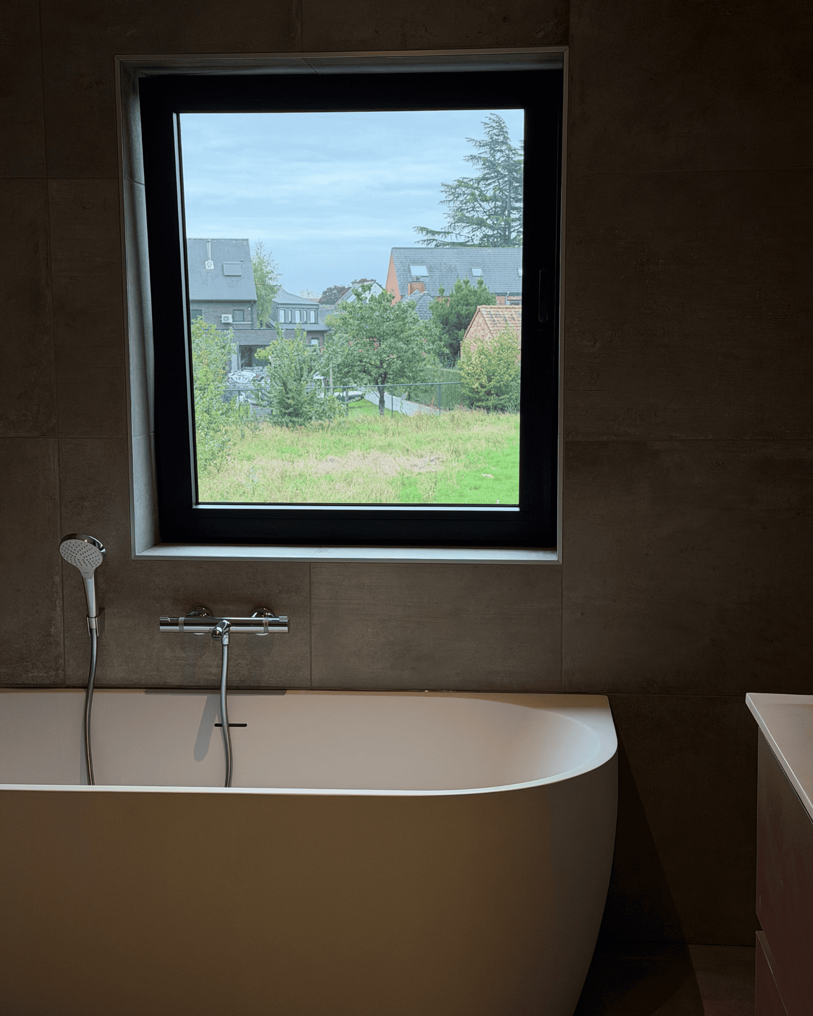 “Wat ik positief vond, was dat er onmiddellijk werd meegedacht. Niet alleen over de plannen, maar ook over keuzes. Ik herinner me dat Lorenzo zelfs zei: ‘Je moet nekeer boven komen kijken naar onze badkamer, zie hoe wij het gedaan hebben.’ Omdat we aan het twijfelen waren van volledig te tegelen.” – Wouter